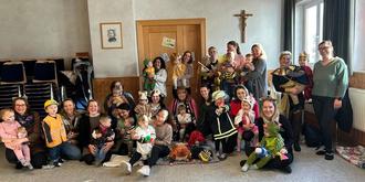 Helau und Alaaf, hieß es letzten Mittwoch auch bei der Eltern-Kind-Gruppe. Die selbstgebastelte Dekoration der Zwerge schmückte den großen Saal im Pfarrheim. Zu guter Faschingsmusik durften die Kinder an verschiedenen Spielstationen ihre Geschicklichkeit unter Beweis stellen. Wem sein Kostüm noch nicht genug war, klebte sich noch ein Tattoo auf. Um Mamas und Kinder bei Laune zu halten, gab es zur Stärkung leckere Krapfen und Brezen. Zum Abschluss bekam jedes Kind noch eine Klapperhand, um den Faschingsball mit ein bisschen Krach zu beenden.