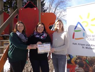 Mit großer Freude können wir von einer rundum gelungenen Spendenaktion berichten: Durch den Verkauf der selbstgemachten „Filz – Chip – Täschchen“ konnte die „Staudennadel“ dem Kindergarten St. Michael eine Spende von 1.300 Euro überreichen. Der gesamte Erlös kommt unseren Krippen- und Kindergartenkindern zugute und wird für neues Spielmaterial im Garten der beiden Häuser eingesetzt.