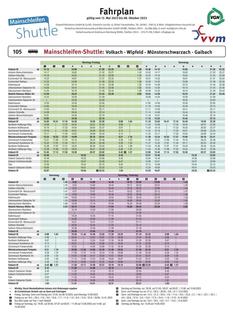 Die Freizeitbuslinie „Mainschleifen-Shuttle“ ist zwischen dem 12. Mai und 8. Oktober wieder „on tour“. Die Linie 105 verkehrt dabei zwischen der Mainschleife und dem Steigerwald und verbinden an Freitagen, Samstagen sowie Sonn- und Feiertagen 11 Orte über drei Landkreisgrenzen hinweg. Zusätzlich zu den Regelfahrten werden zu verlängerten Wochenenden und großen Veranstaltungen auch wieder Zusatzfahrten an Sonn- und Feiertagen, zum Start ins Wochenende und die Weinfest-Nachtbusse angeboten.