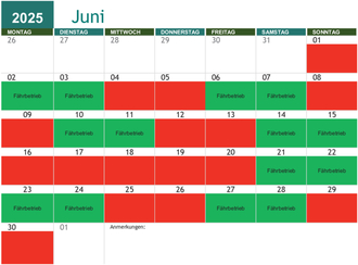 | An den Tagen mit Fährbetrieb verkehrt sie zu den folgenden Zeiten: | |