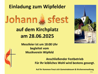 Herzliche Einladung an alle Wipfelder/innen und Gäste zu unserem Johannisfest auf dem Kirchplatz in Wipfeld, am Samstag, den 28. Juni.