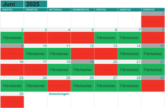 An den Tagen mit Fährbetrieb verkehrt sie zu den folgenden Zeiten: