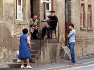 Wipfeld im Jahr 1981: Szenen aus Stephan Bleeks Film über die Wipfelder Fähre. Links: Die Fährleute Alfons und Maria Zeißner beim Plausch vor ihrem Haus in der Mainstraße