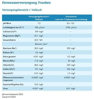 Das an die Abnehmer abgegebene Trinkwasser entspricht an den Übergabestellen der Fernwasserversorgung Franken in allen Belangen der Trinkwasserverordnung.