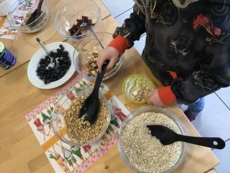 Vor Kurzem hat der Elternbeirat für die Kinderhauskinder eine reichhaltige Müslibar vorbereitet. An diesem Tag konnte die Brotzeit zum Frühstück daheim bleiben. Nach Lust und Laune konnten sich die Kinder am Buffet bedienen. Da die Auswahl an Müsli, Joghurt, Milch und Obst so reichhaltig war, war die erste Entscheidung gar nicht so einfach. Aber durch die tatkräftige Unterstützung der Elternbeiratsmamas hat jedes Kind das richtige Müsli gefunden. Und weil es den meisten Kindern so gut geschmeckt hat, gab es natürlich noch ein paar Runden Nachschlag. Vielen Dank an den Elternbeirat für diese tolle Aktion! Den Kindern hat es sichtlich geschmeckt. Auch zwei Tage später, als die Müslireste verbraucht wurden und nochmals ein Müslibuffet aufgebaut wurde, haben die Kinder kräftig zugelangt.