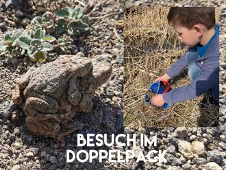 In unserem Garten hatten wir neulich Besuch im Doppelpack. Zwei kleine Frösche hatten sich im Sandkasten verirrt und suchten den Weg zum Fischweiher, der sich gleich gegenüber unseres Kinderhauses befindet. Ganz gespannt beobachteten die Kinder die beiden Tiere, die aufeinandersaßen. Aber warum? Die Kinder stellten die Vermutung auf, dass es sich um Mama und Kind handelte, weil das obere Fröschlein etwas kleiner war als das untere. Da dies das Interesse der Kinder weckte, haben wir in unserer Kindergarten-Bibliothek nach einem Buch über Frösche gesucht und sind fündig geworden. Wir fanden heraus, dass es sich hierbei um Erdkröten handelt - die im März und April zu den Gewässern wandern, um zu laichen, in denen sie selbst geboren wurden. Auf dem Rücken des Frauchens handelte es sich auch nicht um ein Kind, sondern um eine männliche Kröte. Viele Männchen lassen sich von Weibchen zum Wasser tragen. Das liegt aber nicht daran, dass sie faul sind: Bei den Erdkröten sind die Weibchen immer größer und es gibt es weniger als Männchen. Da diese aber nicht leer ausgehen wollen, suchen sie sich auf dem Weg zum Gewässer eine passende Partnerin. Ist sie gefunden, klettert das Männchen auf den Rücken des Weibchens und klammert sich fest. Man nennt diese wandernden Paare auch Doppeldecker. Um den beiden Besuchern eine sichere Ankunft am Weiher zu gewähren, setzten wir die Kröten in einen Eimer und trugen sie hin. Nahe am Gewässer suchten wir ein schönes Plätzchen, um die Erdkröten wieder freizulassen.