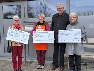 Da kann man gut lachen! V.l.: Elisabeth Fuss für die Nachbarschaftshilfe Gelting/Finsing, Christine Bloch für die Tafel Poing und Margit Kukla für „Tischlein deck dich“ freuen sich über die Schecks, die Wolgang Hansjakob überreichen konnte.