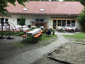 Endlich gab es wieder ein „normales“ Sommerfest im Kinderhaus. Nach zweijähriger Pause haben sich Groß und Klein am Samstag, den 09.Juli 2022, im Kinderhausgarten eingefunden. Zum Thema „Die kleine Raupe Nimmersatt“ haben die Kinderhauskinder in den Wochen davor ihr Fest fleißig vorbereitet. Stolz haben die Entenlandkinder das Raupe Nimmersatt Lied präsentiert und zum Lied „Sommerfest auf der Wiese“ wurde sich sportlich bewegt. Dass es dafür einen großen Applaus von den Eltern gab, war natürlich klar. Anschließend konnten sich die Kinder bei Spiel- und Bastelstationen kreativ entfalten. Besonders beliebt war die Schmink- und Tattoostation. Das leibliche Wohl ist auch nicht zu kurz gekommen. Bei Köstlichkeiten vom Grill sowie einem reichlichen Salatbuffet konnte man es sich gut gehen lassen. Wer noch Lust auf Nachtisch hatte, konnte sich durch das Kuchenbuffet schlemmen.