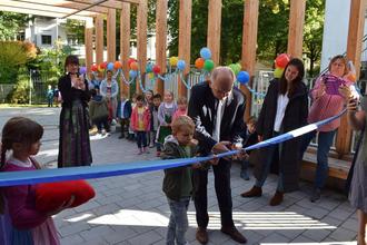Nach etwas mehr als einem Jahr Bauzeit konnte nun das neue Gebäude des Kinderlands Neufinsing - „Zur Sonnwend“ bezogen werden. Am 5. Oktober durchtrennte Bürgermeister Kressirer gemeinsam mit einem der Kinder feierlich ein Band und schon konnten die Gruppen die neuen Räume erkunden.