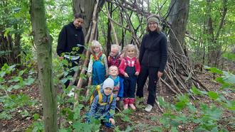 Zum neuen Kiga-Jahr ist unser Kinderhaus um eine Kindergarten-Waldgruppe erweitert worden. Aktuell 7 Kinder gehören zu den „Waldfüchsen“, die sich täglich in der Natur aufhalten. Dies erfordert ein hohes Maß an gegenseitiger Unterstützung auf natürlichem Weg: Sich gegenseitig den Hügel hoch helfen, mit vereinten Kräften Stämme heranschaffen um ein Lager zu bauen usw. braucht Partner*innen und Hilfe vom Anderen in einem selbstverständlichen Zusammenhang.
