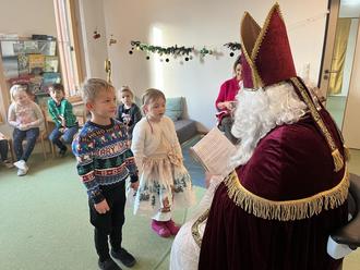 Am 6. Dezember 2022 hat uns der Nikolaus besucht. Die Kinder waren schon am Morgen sehr aufgeregt, als sie entdeckt hatten, dass einer ihrer Socken nicht mehr da war. Sie konnten es nicht mehr erwarten. In besinnlicher Atmosphäre warteten die Kinder auf den Nikolaus. Als es schließlich an der Türe klopfte, war es plötzlich ganz still. Der Nikolaus trat ein und die Kinderaugen strahlten. Liebevoll begrüßte er die Kinder und durfte dann erstmal ein paar Fragen beantworten. Danach gab er seinen goldenen Stab aus der Hand, um aus dem goldenen Buch vorzulesen. „Die Engel waren sehr fleißig“, meinte er, denn sie hatten viel über die Kinder aufgeschrieben. Gespannt haben die Kinder zugehört und auch die ein oder andere Sache versprochen. Zum Abschluss hat er sich, weil er die Musik so gerne mag, noch ein Lied von den Kindern gewünscht.