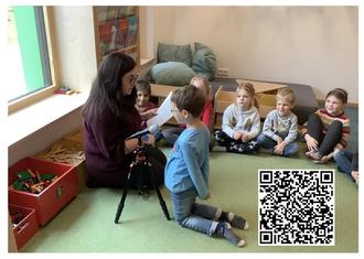 Die Vorschulkinder der Delfingruppe aus dem Kinderland Neufinsing - Zur Sonnwend bekamen auch dieses Jahr die Möglichkeit ein Hörspiel aufzunehmen. Die Geschichte vom kleinen bayrischen Floh, der das Christkind zum Lächeln brachte, soll Eltern, Großeltern und sonstigen Verwandten eine Freude zu Weihnachten machen. Unser erster Weg führte uns zu unserem Medienschrank. Hier haben wir uns gemeinsam Technik ausgesucht, die wir zu einer Hörspielaufnahme brauchen. Danach wurden ein paar Probeaufnahmen gemacht, um sich selber zu hören. Bevor die Rollen an die Kinder verteilt wurden, haben wir gemeinsame Sprechübungen gemacht. Nun kam es darauf an, genau hinzuhören und ebenso genau und mit kräftiger Stimme nachzusprechen. Das erfordert viel Mut und Selbstvertrauen! Wichtig war auch, dass alle anderen sehr leise und rücksichtsvoll sind, damit die Aufnahme nicht gestört wird. Wer sich unser Hörspiel anhören möchte, kann dies auf unserer Homepage finden, oder scannt einfach den QR Code unten. Viel Spaß und ein schönes Weihnachtsfest 2022 wünschen euch die Delfine.