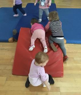 Jeden Dienstag findet im Kinderhaus Kinderland Eicherloh - Am Park das Turnen für die ganz Kleinen, unsere Krippenkinder, statt. Mit großer Freude starten wir mit unserem Begrüßungslied in den Turntag. Es werden verschiedene Stationen, wie z.B. ein Tunnel zum Durchkrabbeln, eine Matte zum Springen und eine Bank zum Balancieren aufgebaut. Durch die verschiedenen Stationen erlernen die Kinder soziale Kompetenzen, die Muskulatur wird gestärkt und wichtige Bewegungsmuster werden stabilisiert.