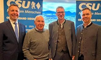 gratulieren von links: Dr. Christian Hümmer (Oberbürgermeister Stadt Traunstein), Franz Maier (Altbürgermeister und Ehrenbürger von Siegsdorf), Hermann Mitterer (Bürgermeisterkandidat CSU Siegsdorf), Jürgen Leikert (Ortsvorsitzender CSU Siegsdorf)
