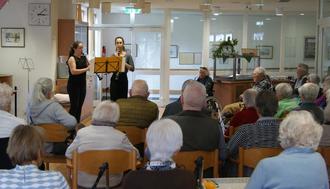 Wir hatten das Glück, ein Klarinettenduo - Theresa Ströbele und Julia Vogel - bei uns im Haus begrüßen zu dürfen. Sie spielten bekannte, kurze und beschwingte, Stücke wie Vivaldi, Rossini, Mozart, Bizet, Beethoven, auch Volksmusik sowie z.B. Variationen über "Oh du lieber Augustin" etc. Sie nahmen uns mit in fremde Länder und ferne Orte und zauberten Bewohnerinnen und Bewohnern sowie Angehörigen ein Lächeln ins Gesicht.