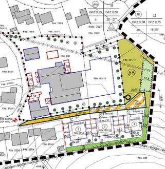 Ziel der Planung ist die Erweiterung des Allgemeinen Wohngebietes (WA) um drei Parzellen und die Erweiterung des bestehenden Mischgebietes (MI). Mit der Planung geht die Verlegung des bestehenden Kinderspielplatzes nach Osten einher. Auf die abgedruckte Darstellung wird verwiesen.