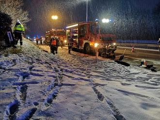 Aufgrund glatter Fahrbahn kam eine PKW Fahrerin alleinbeteiligt von der A7 ab und landete mit ihrem Mercedes in der Böschung. Das Fahrzeug lag auf der Seite und die leicht verletzte Fahrerin konnte das Fahrzeug nicht selber verlassen. Von uns wurden die Kindersitze, die auf der hinteren Sitzbank montiert waren, demontiert. Dadurch konnte die Rückenlehne des Fahrzeuges umgeklappt werden und die Frau aus dem Fahrzeug herausklettern. Leicht verletzt wurde sie mit dem Rettungswagen in ein Krankenhaus verbracht. Bis der Abschleppdienst das Fahrzeug geborgen hatte blieben wir mit dem Unimog mit VSA vor Ort und sicherten die Einsatzstelle ab. Während des ganzen Einsatzes wurde der Verkehr auf der Überholspur an der Einsatzstelle vorbeigeleitet.