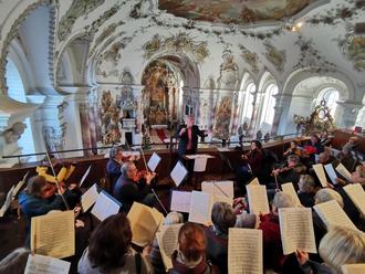 Mit dem Aufhören angefangen hat es schon im Juli 2022 beim Abschlusskonzert des „Ensemble Vocale“, das Gottfried Allgaier gründete und dreißig Jahre lang leitete. Und mit dem letzten großen Chor- und Orchesterkonzert im Juni 2023 in der Nesselwanger Pfarrkirche wurde es allgemein bekannt, dass er den „Beruf mit dem schönsten Arbeitsplatz in Nesselwang, nämlich auf der Empore der Pfarrkirche“, wie er sagt, in jüngere Hände geben wird.