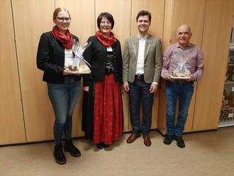 v.l.: Melanie Schmölz, Vorständin Lydia Haslach, 1. BGM Pirmin Joas, Josef Haug