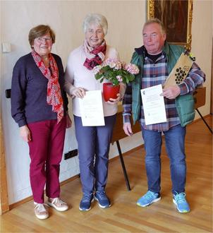 Für langjährige Mitgliedschaft wurden für 25 Jahre ausgezeichnet und die Urkunde mit Ehrennadel überreicht an Gregor Immler und Hannelore Kerpf, die 2. Vorsitzende.