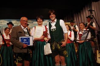 Kurz vor der Pause wurde Lydia Haslach für „30 Jahre musikalische Leiterin der Jodlergruppe Nesselwang“ ausgezeichnet.