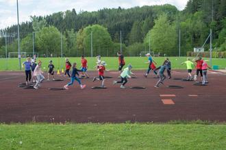 ca. 100 Kinder in acht Gruppen. Mit rund 50 jungen Sportlern ist der TVN beim Sieben-Vereine-Sportfest vertreten.