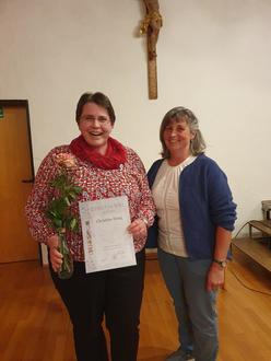 Für ihre Treue zum Verein wurden einige Mitglieder für 25 Jahre und 40 Jahre geehrt. Eine besondere Auszeichnung erhielt Vorsitzende Christine Haug vom Bezirksverband: Für 15 Jahre Vorstand bekam sie die silberne Anstecknadel und eine Urkunde überreicht.