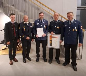 Kommandant Markus Schmid erhielt aus den Händen von Kreisbrandrat Markus Barnsteiner das Ehrenkreuz in Silber des Kreisfeuerwehrverbandes – eine Würdigung seines langjährigen Engagements und seiner Führungsstärke.