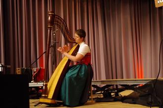 Begeisterten Beifall spendeten die Zuhörer Marciana Endras. Mit ihrer Harfe und feinem Solojodler erzählte sie des Gschichtle „Über Stock und Stäi“.