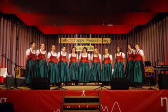 Vor der Pause waren noch die Nesselwanger Jodler zweimal dran. Die Jodler trugen „D´Sonne“ und den „Nachtbuabejuitz“ vor.