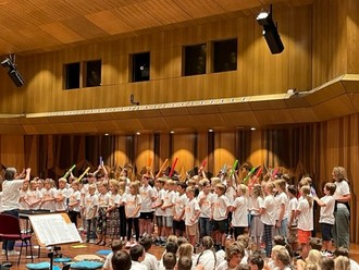 Mit insgesamt 77 Kindern durften wir, die Klassen 2a, 2b, 3b und 4a der Grundschule Nesselwang am 5. Juli zum Chorklassentreffen nach Marktoberdorf fahren.