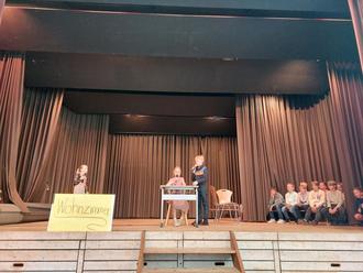 Die Klasse 4b bewies mit einer Choreographie auf Andreas Bouranis Lied „Ein Hoch auf uns“ ihr sportlich, akrobatisches Können. Katrin Henrich fasste in ihren Worten zusammen, wie die Kinder sich über Schule äußerten. Schule sei mehr als nur Lernen, Schule ist auch Neues auszuprobieren, Freunde treffen und Freunde finden, zusammenhalten, Ausflüge machen und zusammen Spaß haben, gemeinsame Pausen haben, manchmal Streit– aber auch sich wieder vertragen.