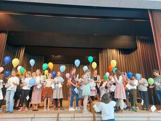 Anja Selzer verwies in ihren Abschiedsworten noch einmal auf die Stolpersteine, wie Corona oder häufige Lehrerwechsel, die den Kindern in den vergangenen Jahren bisweilen im Weg lagen. Sie betonte jedoch auch, dass diese Stolpersteine von jedem einzelnen Schüler und jeder einzelnen Schülerin übersprungen wurden und alle auf einem Weg mit Hindernissen gut zum Ziel gekommen sind. Mit Blick auf die Sportbegeisterung vieler Viertklässler erinnerte sie die Jungen und Mädchen daran, dass unebene Wege oft ein besseres Training darstellten als ebene Wege ohne Auf- und Abstiege. Sie teilte mit den Kindern ihre Überzeugung, dass diese auf Grund ihrer Erfahrungen in der Grundschule gut für die kommende Schule gerüstet seien und wünschte ihnen ihre Offenheit und Neugierde für Neues zu behalten.