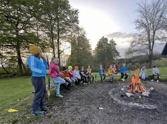 Die nächsten Tage waren geprägt von Erkundungen, einigen Fußball- und Volleyballmatches, Klettern, Stöcke im Wald suchen, schnitzen, Bogenschießen, Singen am Lagerfeuer, und und und.… Immer wieder führten die Erlebnispädagogen mit den Kindern kleine Kooperationsspiele durch, die Vertrauen und Kommunikation innerhalb der Klasse stärken sollten. Außerdem bereiteten die Kinder jede Mahlzeit in Gruppen selbst für ihre Klassenkameraden vor.