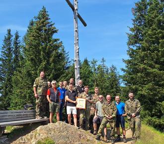 Aus diesem besonderen Anlass wurde eine neue Patenschaftsurkunde unterschrieben und an einem besonderen Ort, dem Gipfelkreuz am Edelsberg, übergeben. Kompaniechef Major Christian Hummel und Bürgermeister Pirmin Joas bekräftigten dabei nochmals die langjährige konstruktive Zusammenarbeit und besondere Verbundenheit seit 2007. Mit dabei waren auch der Spieß der Kompanie, Oberstabsfeldwebel Thomas Geis mit einigen Soldaten und Florian Greis von der Harmoniemusik, Daniel Zeitler vom Ski-Klub und Christian Mühlegg-Greis von der Krieger- u. Soldatenkameradschaft Nesselwang.