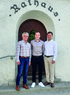 Bürgermeister Pirmin Joas mit dem scheidenden Hauptamtsleiter Helmut Staubinger und seinem Nachfolger Samuel Schubert