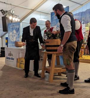 Am Freitag, 15.09.2023 stand dann der Viehscheid Tag an. Bei strahlendem Sonnenschein konnten wir die zwei Kranzrinder und das Vieh am Explorer Hotel in Empfang nehmen. Während die Landwirte am Scheidplatz ihre Schumpen in die Hänger luden, lauschten die Zuhörer untertags den Klängen der Harmoniemusik Nesselwang unter der Leitung von Helmut Wittmann. Am Abend sorgten dann „die Chef´s“ für beste Stimmung unter den Bierzeltgästen.