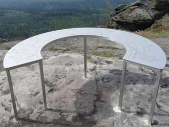 Die Bank am Edelsberg, die von den Schülern des Projektes „Praxis bildet“ im Kempodium gebaut wurde, mittels Hubschrauber hoch geflogen und mit der Bundeswehr installiert wurde.