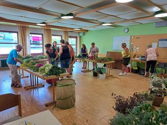 Die Blumenfreunde fangen deshalb frühzeitig an, sich beim Radeln oder Wandern nach den Pflanzen umzusehen und sie werden auch von guten Naturkennern beim Sammeln unterstützt. Auch durften wir in manchem Garten Kräuter und Blumen schneiden.