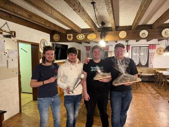 Mit einer einzigen verfügbaren Luftpistole haben 8 Luftgewehrschützen aus Seeg und Nesselwang ein Vergleichsschießen in spezieller Form ausgetragen. Wie gut die Ergebnisse waren, wurde uns nicht bekannt gegeben. Aber die Brotzeit haben Luis Fischer, Benedikt Franzil, Fabian Gschwend und Franz Schleich gewonnen.