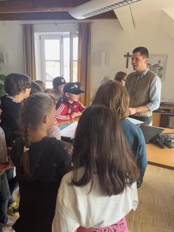 Der Erste Bürgermeister Pirmin Joas empfing die Klasse 4a gemeinsam mit ihrer Klassenlehrerin am 10. Oktober im Sitzungssaal im Rathaus. Die Kinder erhielten die Chance, viele Fragen zu stellen und auch Wünsche für Nesselwang zu äußern. Herr Joas nahm sich sehr viel Zeit, um auf die Kinder einzugehen, sodass manche Antworten für Staunen und Überraschung auf Seiten der Klasse sorgten. Im Anschluss erhielten die Kinder noch eine Führung durch das Gebäude, wodurch sie sich einen genaueren Eindruck der verschiedenen Ämter und Büros machen durften. Sie konnten sehr viel aus dem Besuch im Rathaus mitnehmen und die theoretischen Unterrichtsinhalte mit nachhaltigen Erfahrungen füllen.