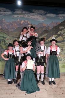 Die vielen Proben trugen Früchte – in diesem Jahr schafften sie es wieder ganz nach oben. Und das noch mit eindeutigem Vorsprung. Ganze sieben Punkte Vorsprung hatten die Alpspitzler vor den Zweitplatzierten „D Rottachtaler Petersthal“. Dritte wurden die „Grüntebuebe Kranzegg“.