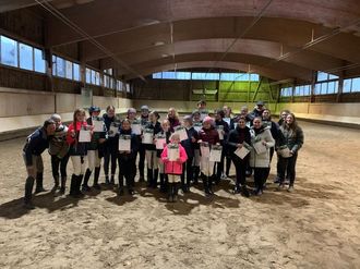 25 Teilnehmer groß und klein zwischen 7 und 60 Jahren bereiteten sich seit vielen Wochen auf das Reitabzeichen in Gschwend am 04. November 2023 vor. Neun verschiedene Prüfungen wurden durch Friedrich Hagendorn und Ute Grebe abgenommen. Wir gratulieren allen beteiligten.