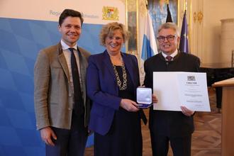 in Würdigung Ihrer besonderen Verdienste um die kommunale Selbstverwaltung darf ich Ihnen nun die Medaille in Bronze und die Urkunde dazu überreichen.