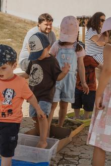 Im Anschluss konnten die Krippenkinder und Geschwister verschiedene Stationen im Garten durchlaufen. Beim Bobbycar-Rennen, der Schatzsuche, dem Entenangeln, dem Fühlpfad und dem Geschicklichkeitsparcours hatten alle viel Spaß. Für alle Kinder gab es auch ein Jolinchen-Tattoo.