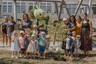 Das Fest wurde außerdem genutzt, um eine Aufgabe zu erfüllen: Der Waldkindergarten hat uns im Rahmen der „Baumpflanzchallenge 2025“ nominiert. Der Elternbeirat investierte in einen Maulbeerbaum. Diesen pflanzten wir gemeinsam mit Jolinchen in unseren Garten.