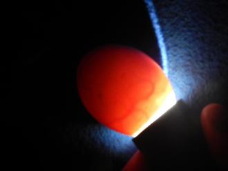 Passend dazu haben wir einen Brutautomat mit 10 Enteneiern bestückt. Nach ein paar Tagen konnten wir in allen Eiern beim Schieren sehen, dass sich dort etwas entwickelt hat und sich munter bewegt.