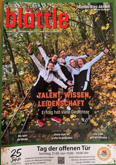 Das blättle - aktuell die Ausgabe 64/2025 September/Oktober - liegt für alle Interessierten in der Tourist-Information der Stadt Monheim / Monheimer Alb zur Abholung bereit.