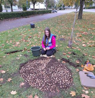 Es ist fast geschafft, die meisten der 15.500 Blumenzwiebeln sind inzwischen im Boden!