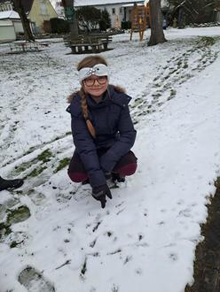 Das mit der Beobachtung erwies sich als gar nicht so einfach: wir konnten nur zwei Amseln entdecken. Dafür haben wir einige Spuren gefunden. Im Schnee waren die Trittsiegel von Katzen, Hunden und Vögeln zu erkennen.